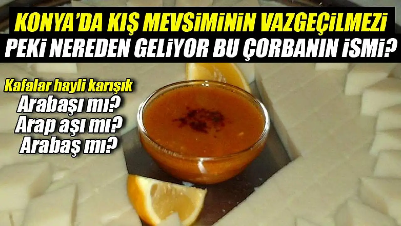 Başta Konya olmak üzere, İç Anadolu Bölgesi'nin lezzetli mi lezzetli, şifa deposu vazgeçilmez çorbasının ismi kimine göre Arabaşı, kimine göre Arap aşı, kimine göre ise Arabaş... Peki doğrusu isim ne? Bu isim nereden geliyor?