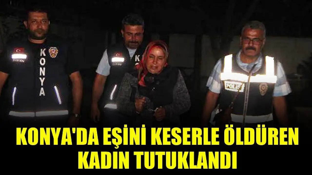 Konya'da kocasını kafasına keserle vurarak öldüren kadın, çıkarıldığı mahkemece tutuklanarak cezaevine gönderildi.