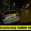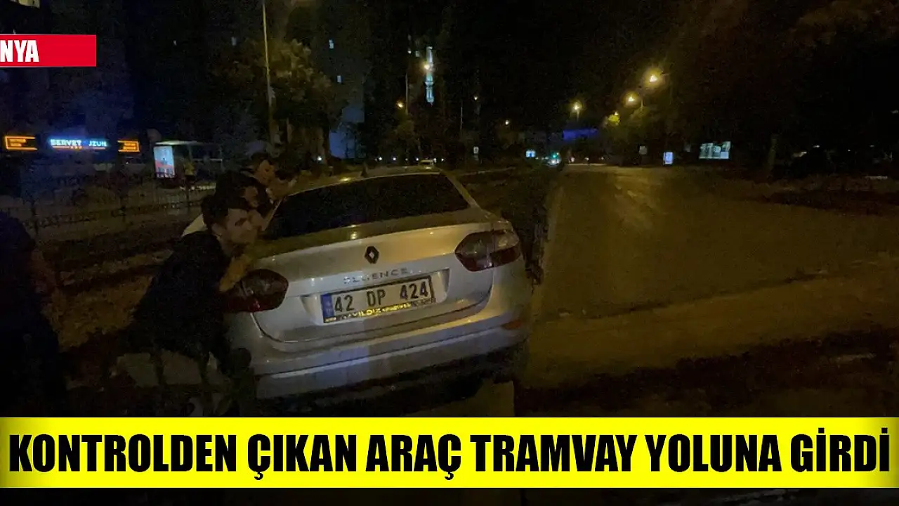 Konya'da kontrolden çıkan araç tramvay yoluna girdi