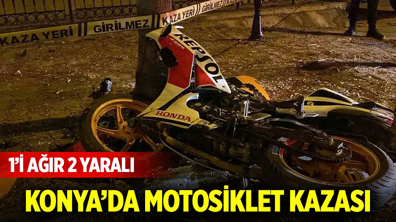 Konya'da kontrolden çıkan motosiklet ağaca çarptı: 1'i ağır 2 yaralı