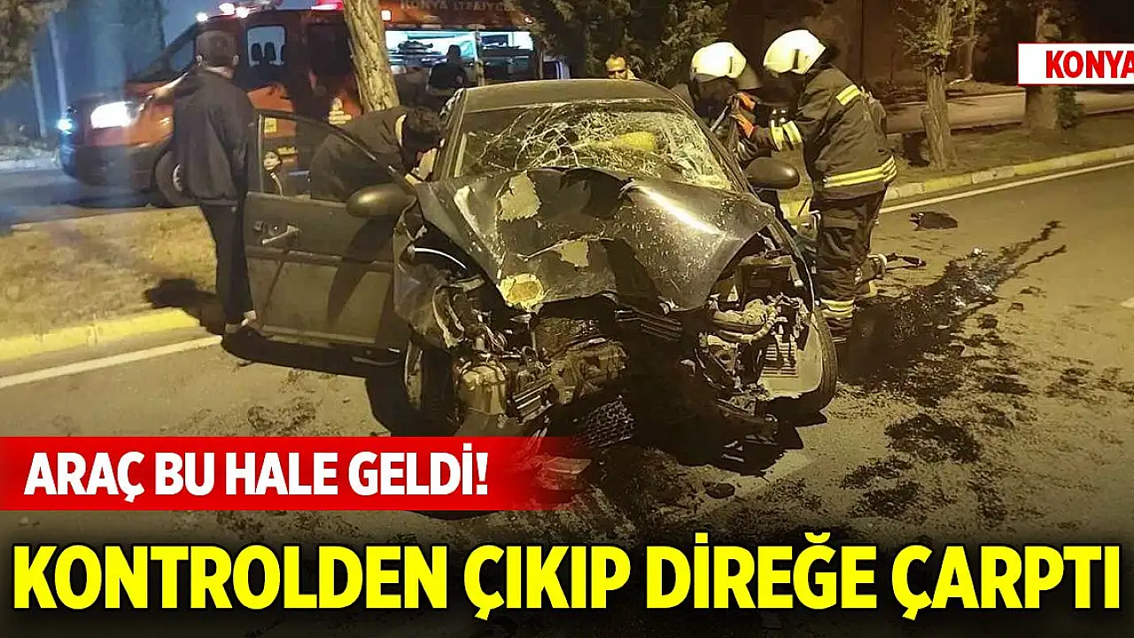 Konya'da kontrolden çıkan otomobil aydınlatma direğine çarptı!
