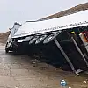 Konya'da kontrolden çıkan tır şarampole devrildi