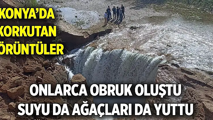 Konya'da korkutan görüntüler Onlarca obruk oluştu, suyu da ağaçları da yuttu