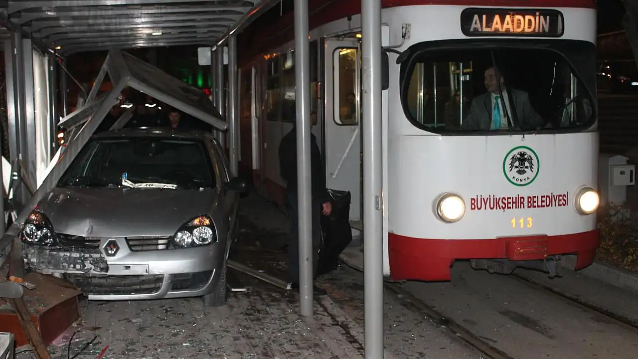 Kaza, saat 23.00 sıralarında merkez Selçuklu ilçesi Alaaddin tramvay durağında meydana geldi. Edinilen bilgiye göre, 42 EHL 64 plakalı otomobilin sürücüsü İsmail Çatal (69) Alaadin Bulvarı’nda seyir halindeyken kendisini sıkıştırdığını iddia ettiği otomobile çarpmamak için manevra yaptı. Otomobilin kontrolünü kaybederek kaldırıma çıkan Çatal, hızla tramvay durağına girdi. Çevredekilerin ihbarı üzerine olay yerine polis ve ambulans sevk edildi. Hafif şekilde yaralanan sürücü sağlık ekiplerinin yaptığı ilk müdahalenin ardından, tedavi edilmek üzere hastaneye kaldırıldı. Kazayı gören Yahya Özdemir (14), “Ben tam karşıdan geçiyordum. Soldan bir araba yaklaşınca, ağabey sola kırdı. Bilet satan adam 5 dakika önce çıkmış. Adam kendisi, ‘Alkollüyüm’ dedi” şeklinde konuştu.