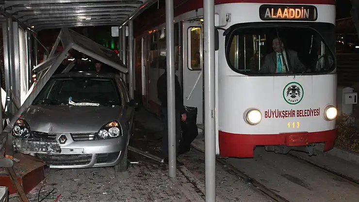 Konya'da alkollü olduğu iddia edilen sürücü otomobiliyle tramvay durağına girdi.