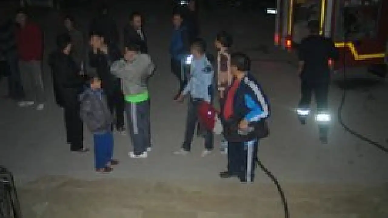 Konya'da bir spor salonunun aydınlatma direğinde çıkan yangın paniğe neden oldu.