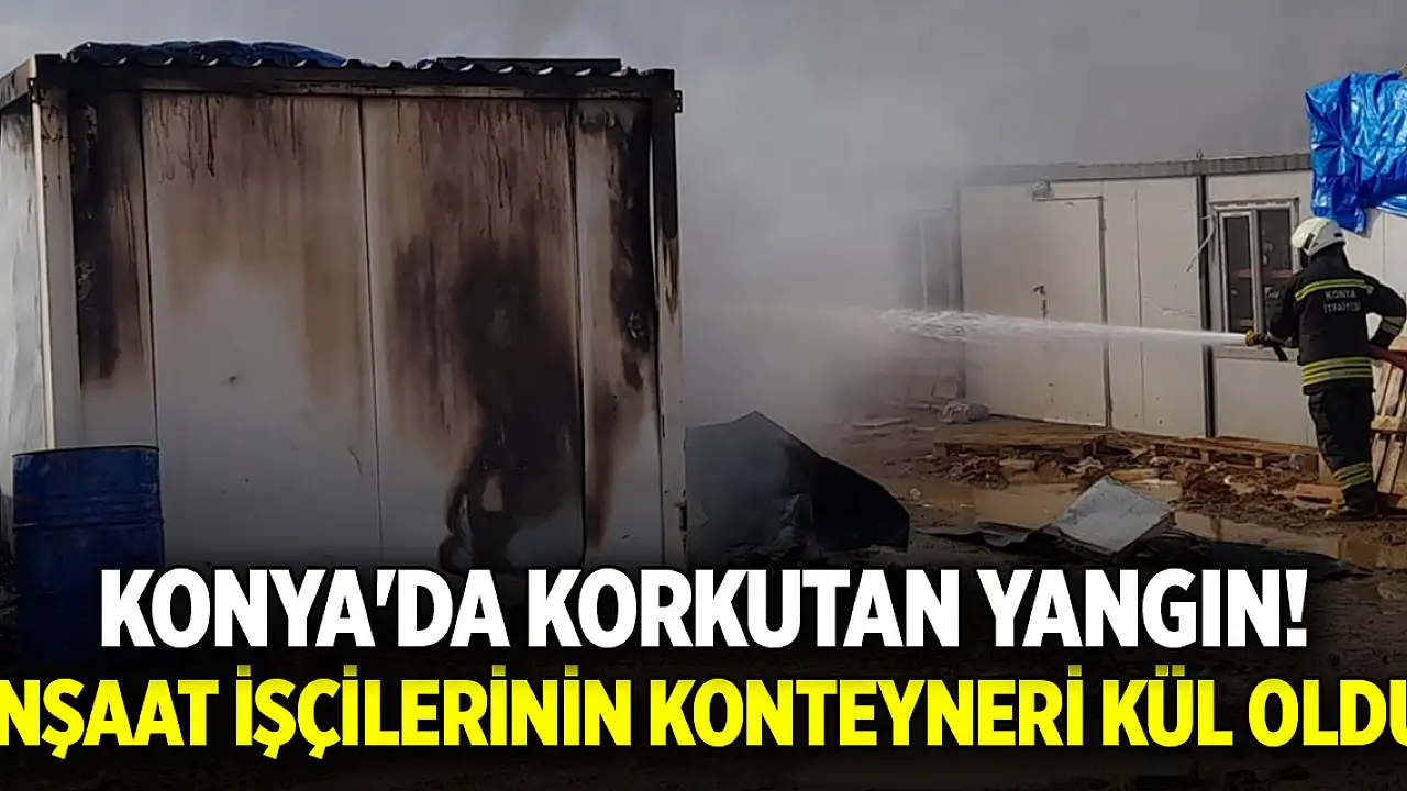 Konya'da korkutan yangın! İnşaat işçilerinin konteyneri kül oldu