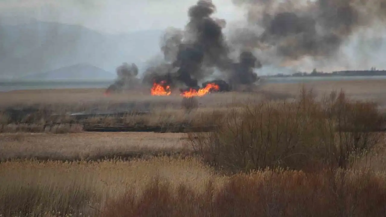 Konya'nın Beyşehir ilçesinde, Beyşehir Gölü Milli Parkı'ndaki sazlık alanda yangın çıktı.