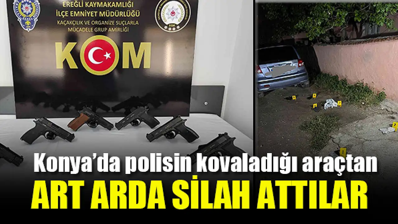 Konya'nın Ereğli ilçesinde polis ekiplerinin dur ihtarına uymayarak kaçan şüpheliler yaşanan kovalamacanın ardından yakalanarak gözaltına alındı. Kovalamaca sırasından şüpheliler tarafından araçtan atılan 6 tabanca ekipler tarafından bulundu.
