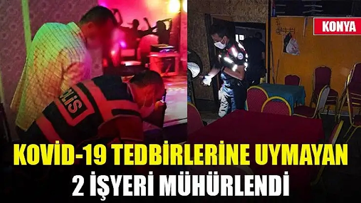 Konya'da Kovid-19 tedbirlerine yönelik denetimler sürüyor. Konya İl Emniyet Müdürlüğü ekiplerinin yapmış olduğu denetimlerde tedbirlere uymayan 2 işyeri mühürlendi.