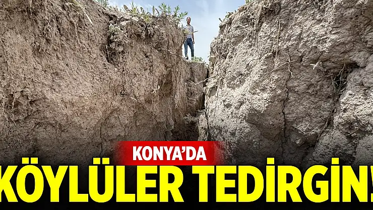 Konya'da kuraklık ve yer altı sularının çekilmesine bağlı olarak, ilk tespitlerde derinliği 8 metreyi bulan, 2,5 kilometre uzunluğunda yüzey yarığı oluştu. Yarıkların oluştuğu mahallenin muhtarı Etem Kutlu, 'Yarıkları gördük, yetkililere bildirdik, inceleme yapıldı. Yarıklar 2,5 kilometre uzunluğunda bazı yerleri 7-8 metre derinlikte. Bu da tehlike arz ediyor, çobanlar ve köylüler tedirgin' dedi.