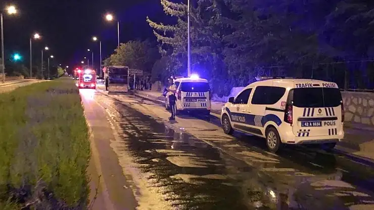 Konya'da koyun yüklü kamyonette yangın çıktı