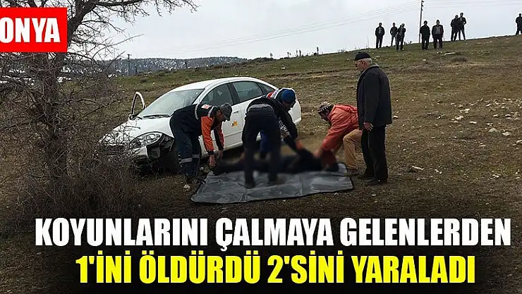 KONYA'da 12 koyunu çalınınca ağılda nöbet tutmaya başlayan Abdullah K.(27), otomobille gelen 3 kişiye av tüfeğiyle ateş açtı. Şüphelilerden Emre Uyanık (28) olay yerinde hayatını kaybederken, Emre Apak (22) ve Ömer Ak (28) ağır yaralandı.