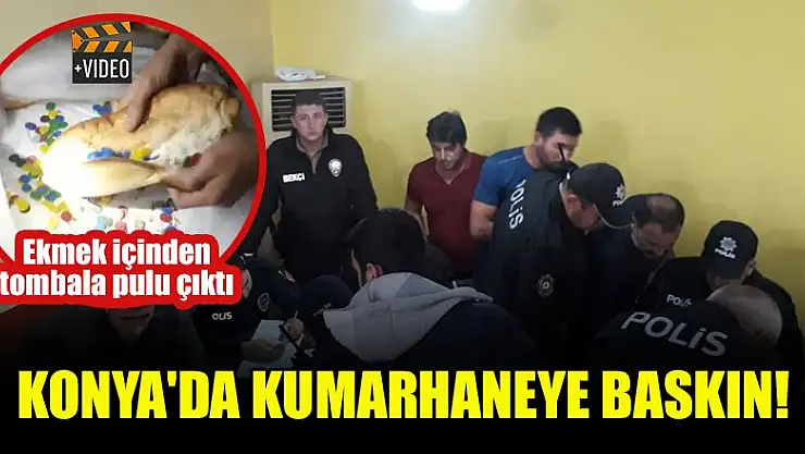 Konya'da polis ekipleri tarafından tombala oynatıldığı belirlenen iş yerine yapılan baskında 65 kişiye idari para cezası kesilirken, iş yerinde arama yapan ekipler ekmek içine gizlenmiş tombala pulu buldu.