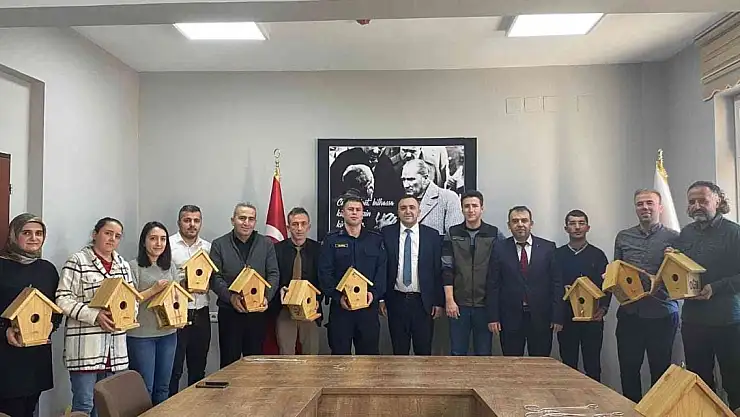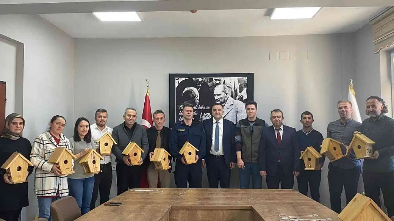Kaymakam Türk, okul idarecilerine okul bahçelerinde bulunan ağaçlara asılması amacıyla hazırlanan kuş yuvalarını teslim etti. Kaymakam Türk yaptığı konuşmasında, tüm canlıların yaşam hakkını gözetmek gerektiğini, bu çerçevede onların da barınmaya ihtiyaç duyduğunu belirterek, "Hayvanlar çoğaldıkça doğa da şenlenecektir. Öğrencilerimize doğa ve hayvan sevgisini aşılamak ve kuşlara yuva olması için bu ahşap yuvaları sizlere dağıtıyoruz. Bu yuvaları okulların bahçelerindeki ağaçlarımıza asarak kuşlara sıcak birer yuva olmasını sağlayalım" şeklinde konuştu.