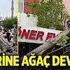 Konya'da kuvvetli fırtına nedeniyle iş yerine ağaç devrildi