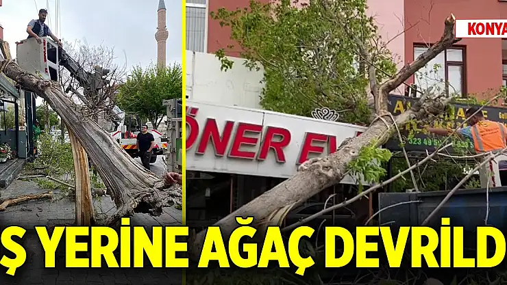 Meram ilçesi Yaka Caddesi üzerinde Mehmet Anlı'ya ait iş yerine kaldırım üzerinde bulunan ağaç devrildi. Ağaç iş yerinin levhasını kırarak maddi hasara neden oldu.