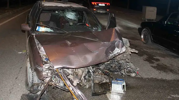 Konya'da lastiği patlayan otomobil direğe çarptı