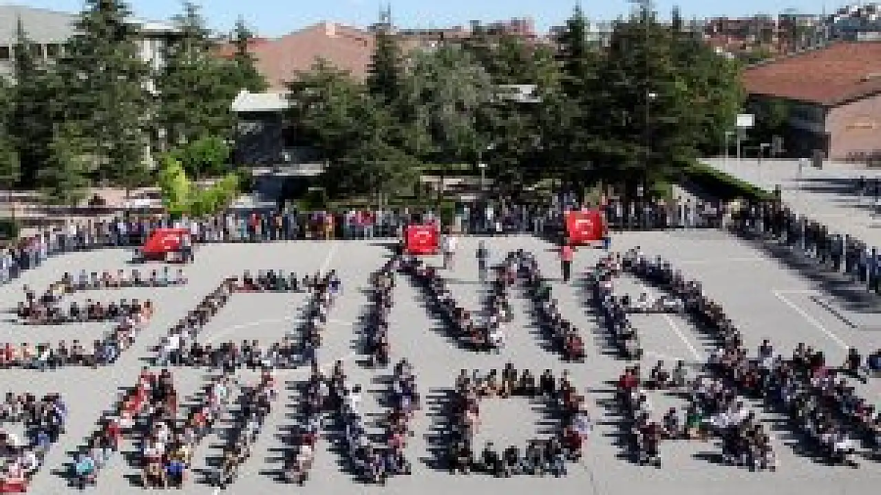 Konya'da Meram Teknik ve Endüstri Meslek Lisesi öğrencileri, okul bahçesinde bedenleriyle "Soma" ve "Soma yanındayız" yazarak, Manisa'nın Soma ilçesindeki maden faciasında hayatını kaybedenleri andı.
