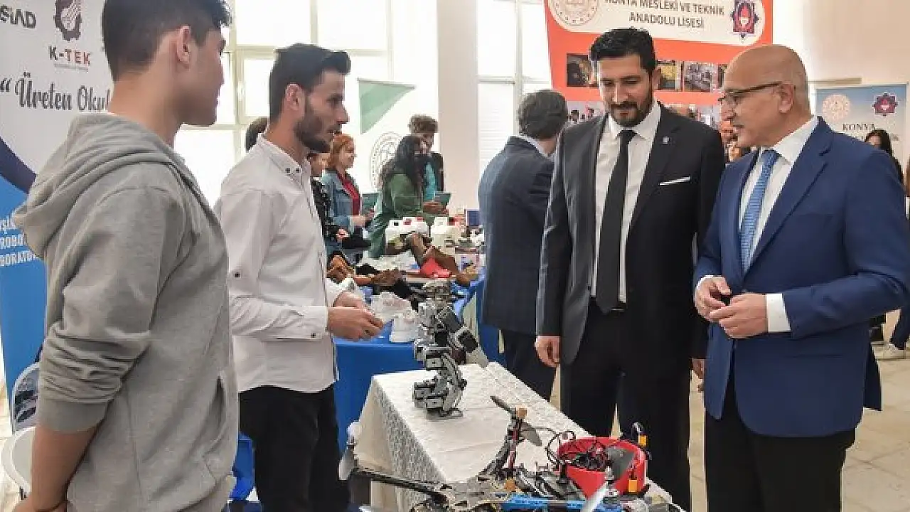 Konya'da '2022 Avrupa Mesleki Eğitim Beceri Haftası' kapsamında kentteki meslek liselerinin yürüttüğü çalışmalardan örneklerin yer aldığı serginin açılışı yapıldı.