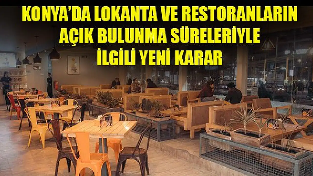 Konya'da koronavirüs tedbirleri kapsamında bir süre kapatılan ve 1 Haziran itibariyle yeni normele dönüş çerçevesinde tedbirler alınan açılan lokanta ve restoranların açık bulunma süreleriyle ilgili yeni karar alındı.