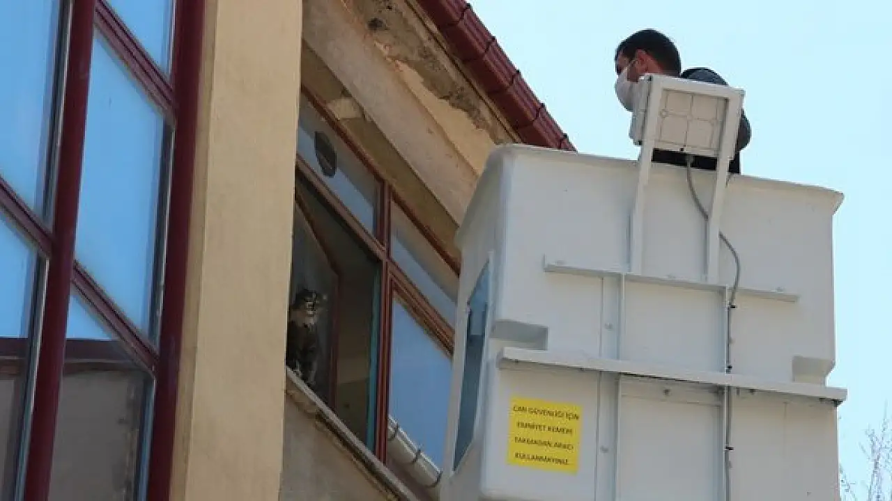 Edinilen bilgiye göre, Evsat Mahallesinde iki katlı kullanılmayan boş bir evde bir kedinin mahsur kaldığı bilgisi verilmesi üzerine harekete geçen ilçe belediyesi ekipleri belirtilen adrese gitti. Vatandaşların sokağa çıkma yasağından ötürü ev sahibine ulaşamadığını beyan ettiği evde, penceresi açık durumda ikinci katta mahsur kalan bir kedi bulunduğu fark edildi. Belediye görevlileri ikinci kata uzattığı sepetli araç aracılığıyla kedinin bulunduğu yüksekliğe kadar çıktı. Kedi, belediye görevlisinin kucağında yere indirilerek mahsur kaldığı yerden kurtarıldı. Yere bırakılan kedi ara sokaklarda gözlerden kayboldu.