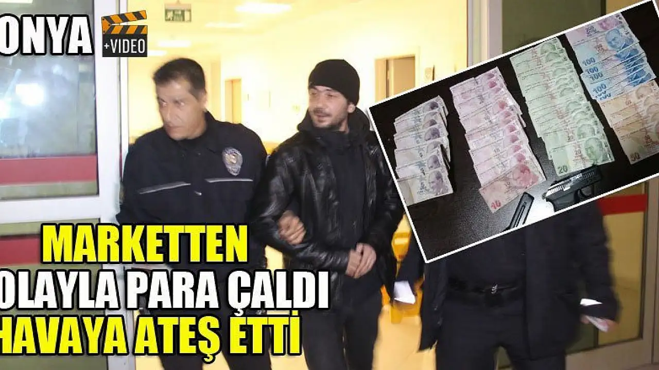 Konya'da marketten kolayla para çaldı, havaya ateş etti