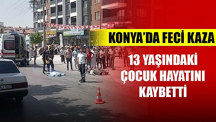 Konya'da motosikletiyle iş yerine giden 13 yaşındaki sürücü, aynı yönde seyreden kamyonun çarpması sonucu hayatını kaybetti. Kamyon sürücüsü kaza sonrası olay yerinden kaçtı.