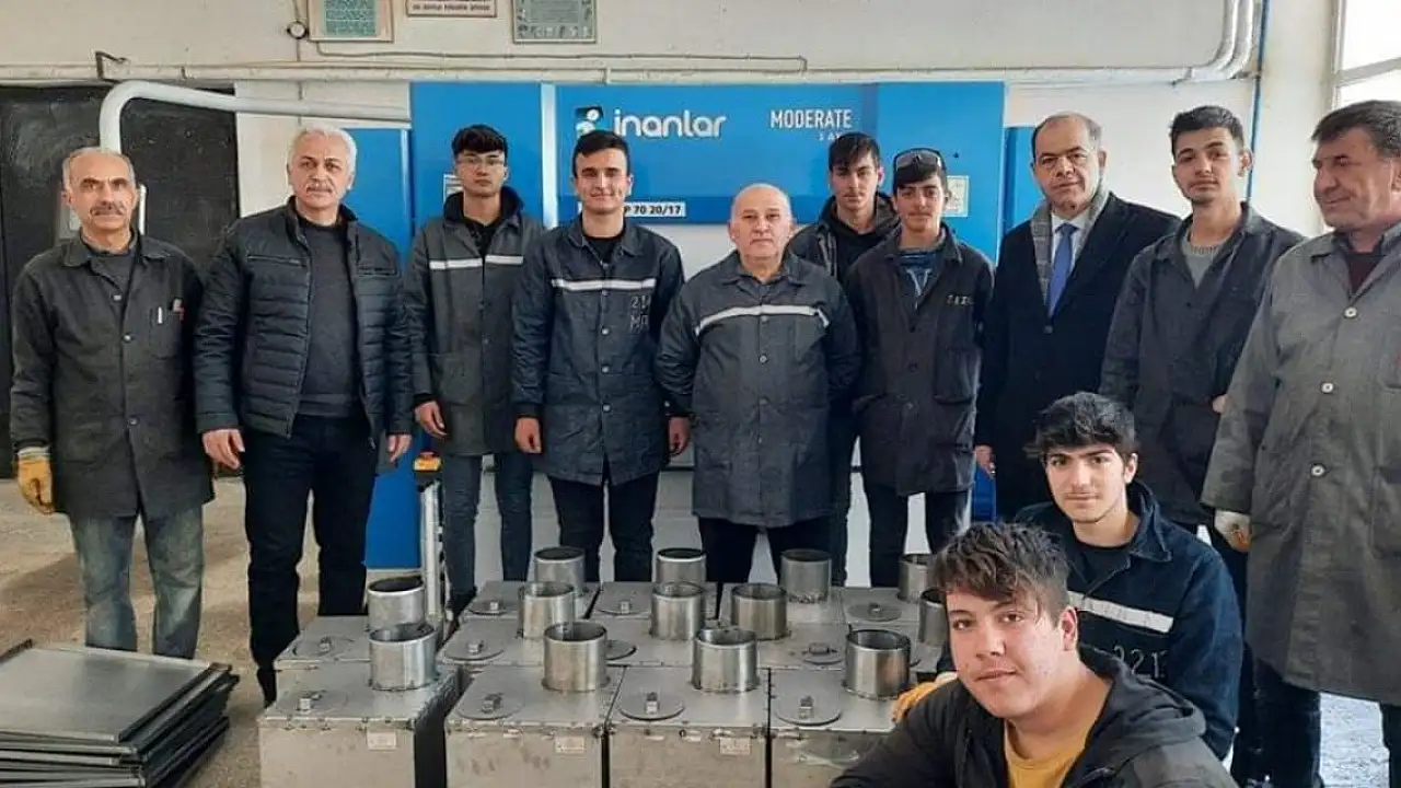 İlçe Milli Eğitim Müdürü Tahir Kibar, yaptığı açıklamada, "Öğretmen ve öğrencilerimiz deprem bölgesine gönderilmek üzere, çadır sobaları üretimine başladı."dedi.