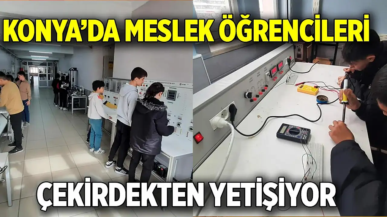 Konya'da liselerde meslek eğitimleri tam gaz devam ederken ortaokullara kurulan meslek atölyeleriyle de öğrenciler meslek becerilerine adeta çekirdekten başlıyor.