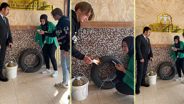 Konya Haberi... Selçuk Üniversitesi Bozkır Meslek Yüksekokulu (MYO) Alternatif Enerji Kaynakları Teknolojisi bölümü öğrencilerinden Zehra Tuş, hayvansal atıklardan biyogaz elde etti.