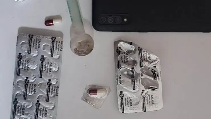Şüphelilerden C.K'nin üzerinde bir miktar sentetik uyuşturucu ile 4 sentetik ecza hap ele geçirildi.