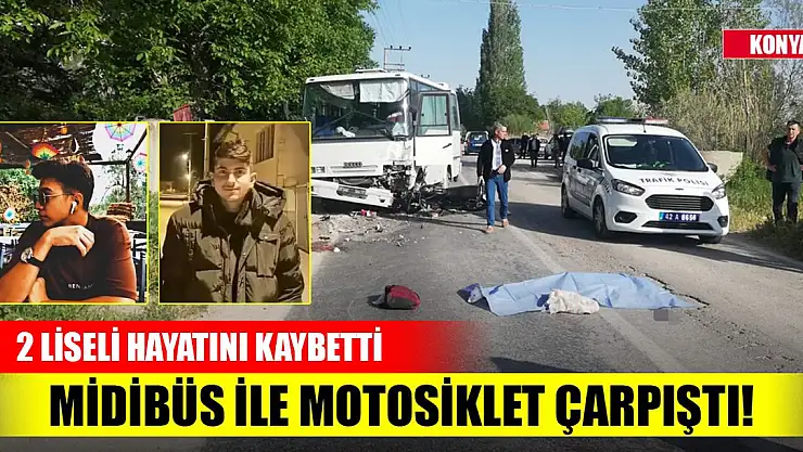 Konya'nın Ereğli ilçesinde midibüs ile çarpışan motosikletin sürücüsü Mert Yusuf Baştuğ (16) ile arkasında oturan arkadaşı Hüseyin Talha Akçay (17), yaşamını yitirdi.