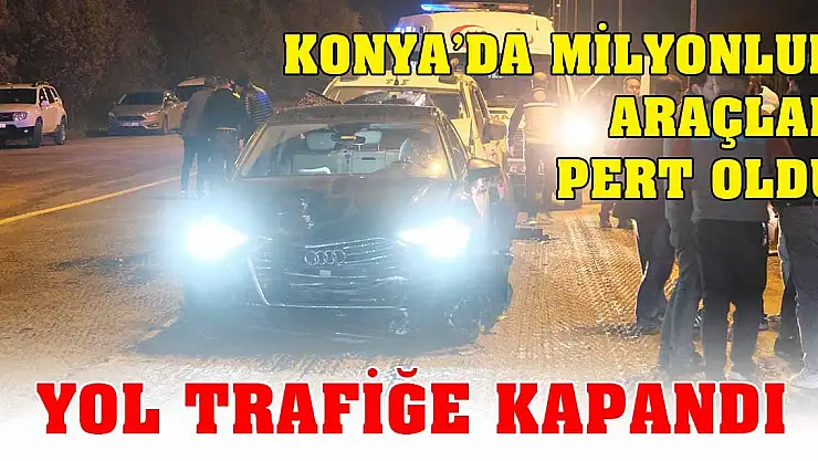 Konya'da milyonluk araçlar birbirine girdi Yol trafiğe kapandı