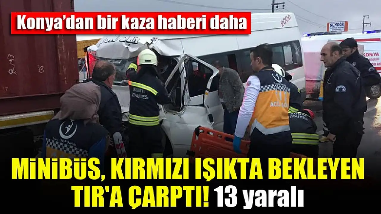 Konya'da minibüs, kırmızı ışıkta bekleyen TIR'a çarptı: 13 yaralı