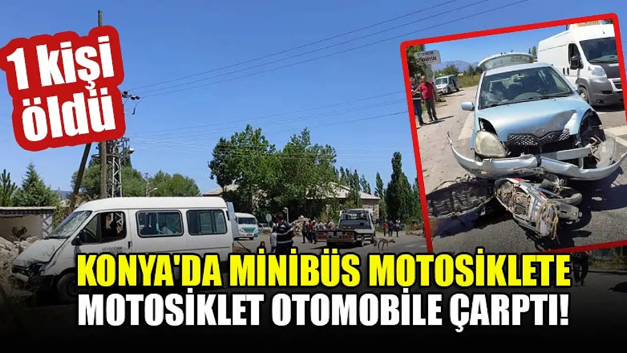 Konya'da minibüs motosiklete,motosiklet otomobile çarptı: 1 ölü
