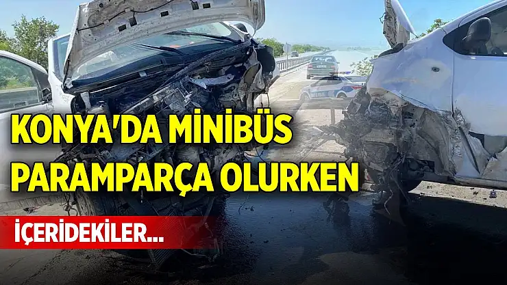 Konya'da minibüs paramparça olurken içeridekiler...