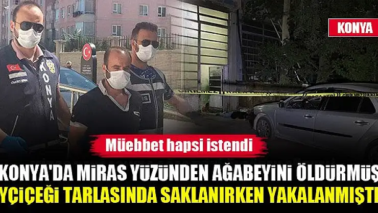 Konya'da miras yüzünden ağabeyini öldürmüş, tarlada saklanırken yakalanmıştı...Müebbet hapsi istendi