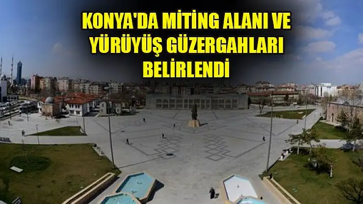 Konya Valiliği tarafından, kent merkezinde miting alanı ve yürüyüş güzergâhları belirlendi.
