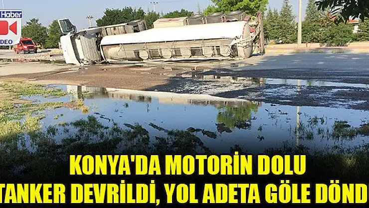 Konya'da motorin dolu tanker devrildi, yol adeta göle döndü