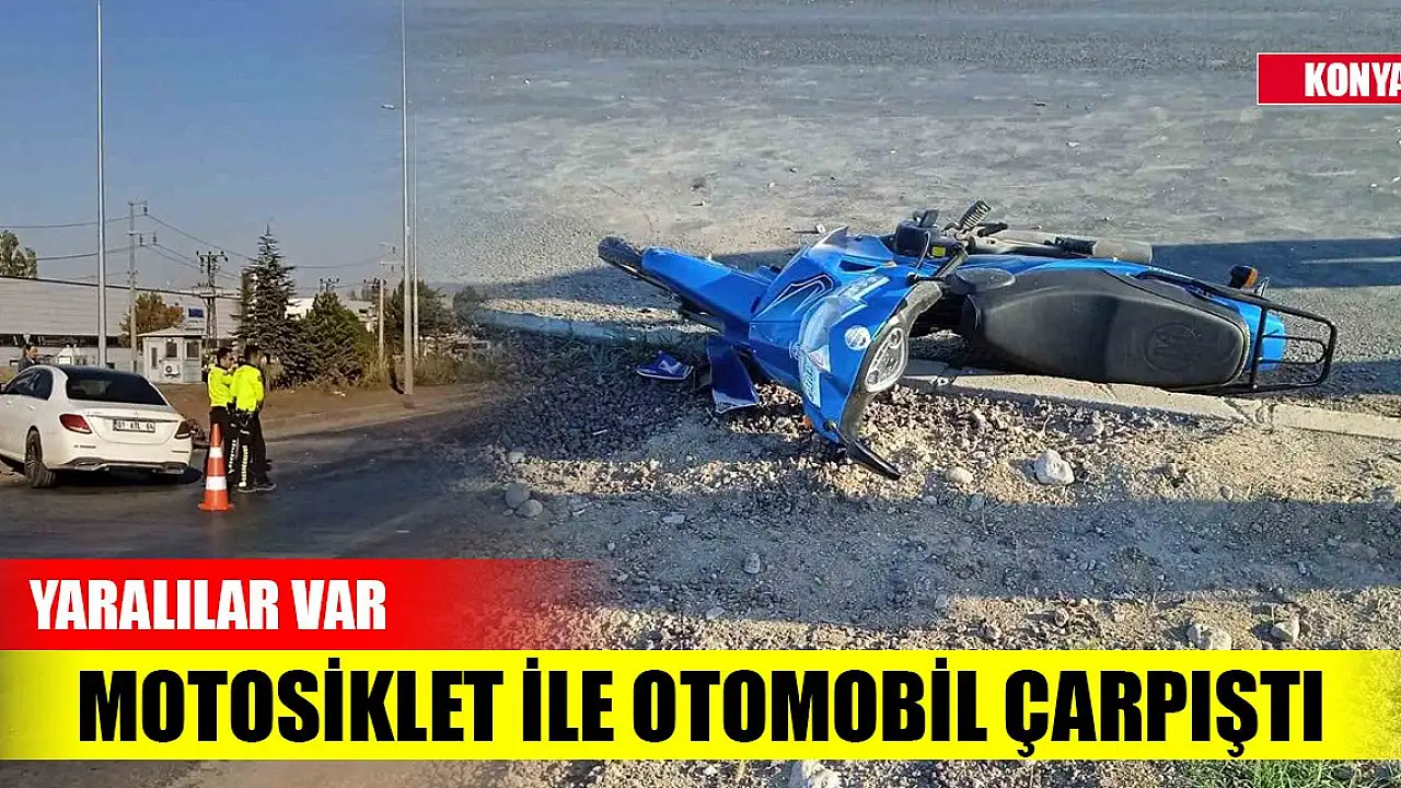 Konya'da motosiklet ile otomobil çarpıştı, yaralılar var