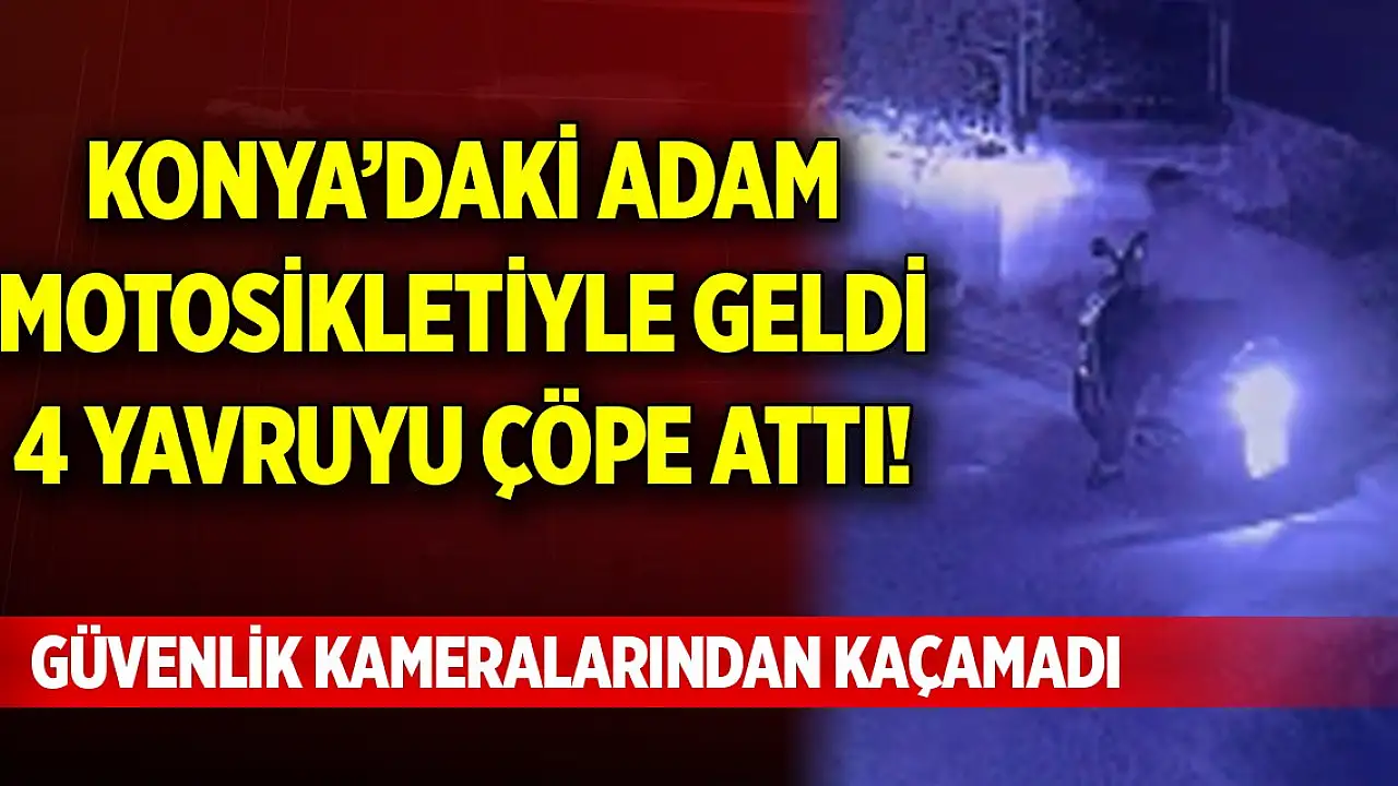 Konya'da motosikletiyle geldi, 4 yavruyu çöpe attı! Güvenlik kameralarından kaçamadı