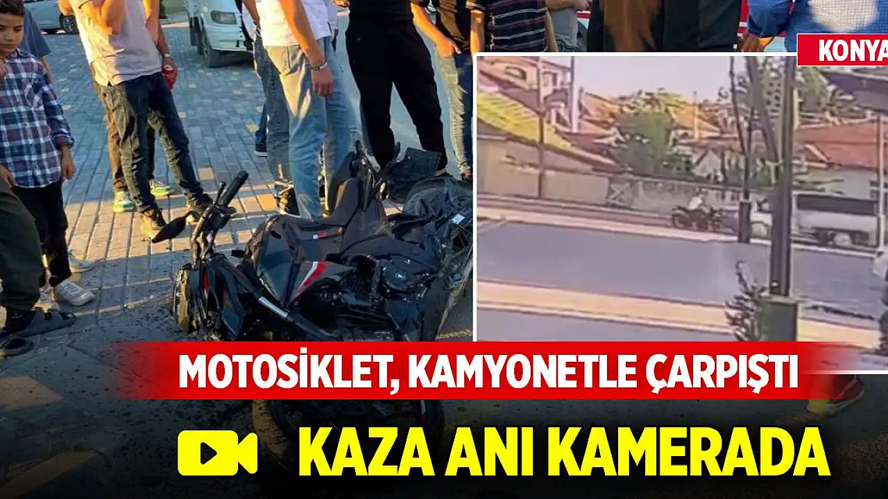 Konya'nın Kulu ilçesinde motosikletin kamyonetle çarpışması sonucu meydana gelen kazada motosiklet sürücüsü 15 yaşındaki çocuk yaralanırken, kaza anı güvenlik kamerasına yansıdı.