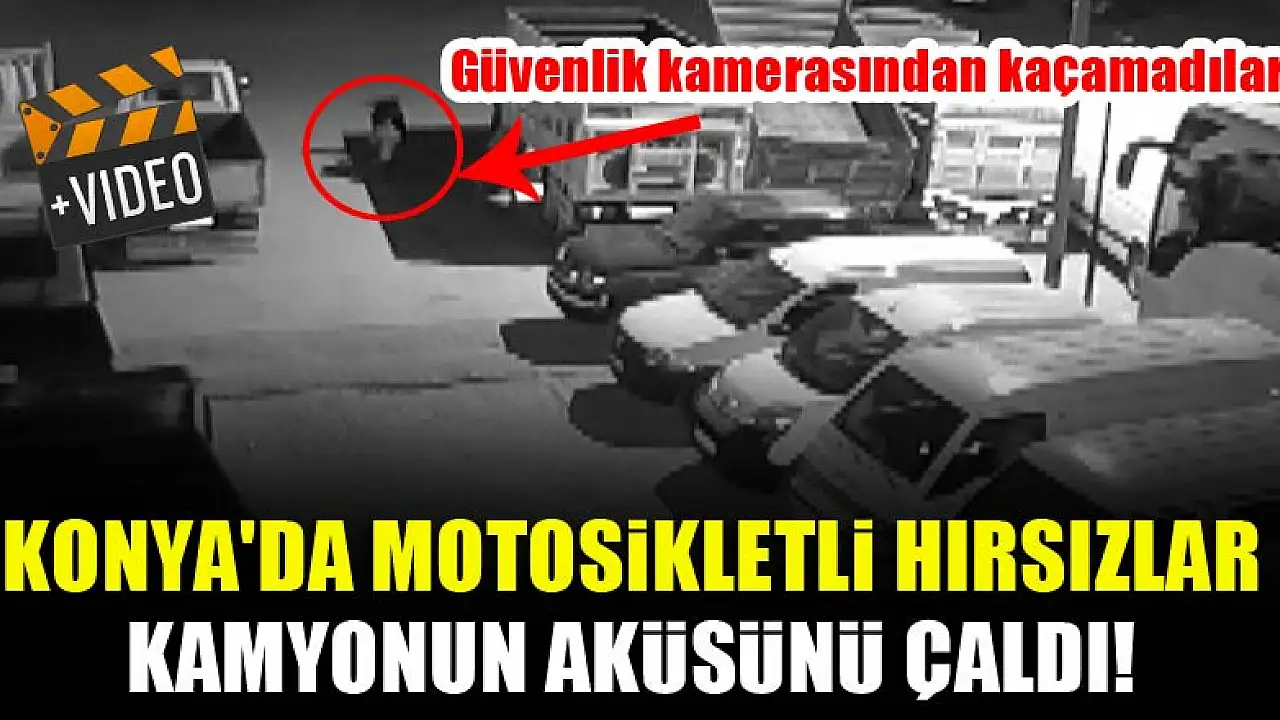 Konya'da park halindeki kamyondan akü çalan motosikletli iki şüpheli güvenlik kameraları tarafından görüntülendi