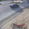 Konya'nın Beyşehir ilçesinde bir sürücünün devrilen motosikletten metrelerce sürüklendiği anlar bir iş yerinin güvenlik kamerasına anbean yansıdı.