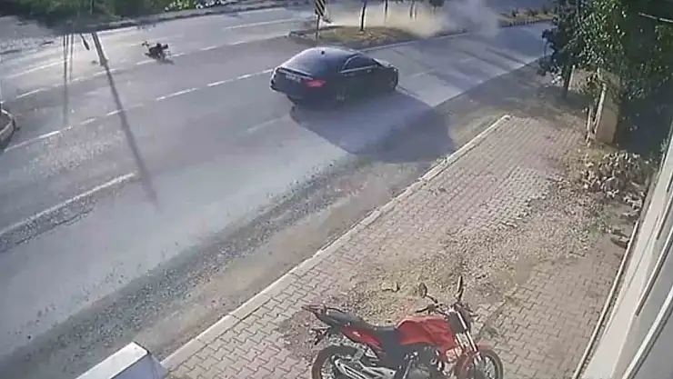 Öte yandan, kaza anı çevredeki bir iş yerinin güvenlik kamerasına yansıdı. Görüntülerde, cadde üzerinde yan yana seyir halinde olan iki motosikletten M.Ç.'nin kullandığı motosikletin aniden devrilmesi, motosikletten savrularak yola düşüp metrelerce sürüklenmesi ve yardım için koşan kişiler ile duran bir otomobil dikkat çekiyor.