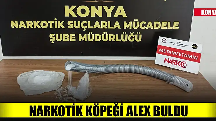 Konya'da narkotik köpeği Alex çamurluğa zulalanmış uyuşturucu buldu