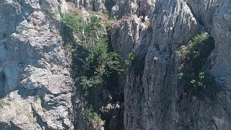 Konya'da, kayalıklar arasında 50 metrelik uçuruma düşen keçi nefes kesen bir kurtarma operasyonunun ardından kurtarılarak sahibine teslim edildi.