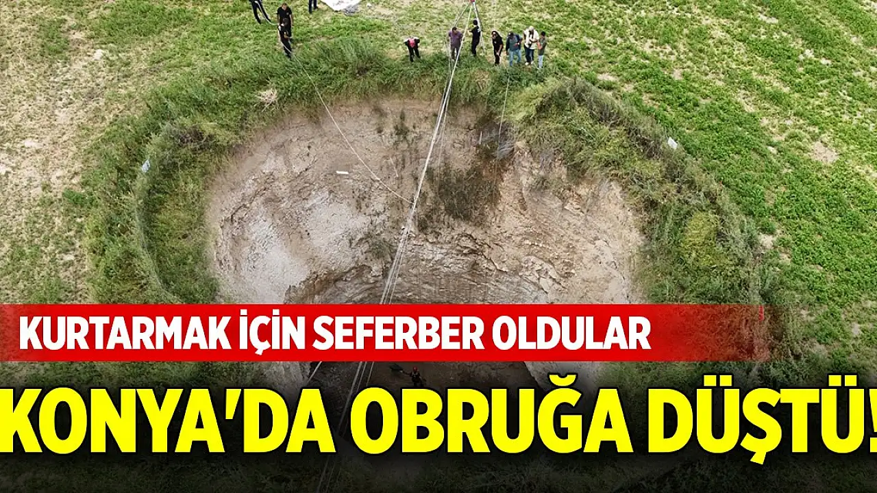 Konya'da obruğa düştü! Kurtarmak için seferber oldular
