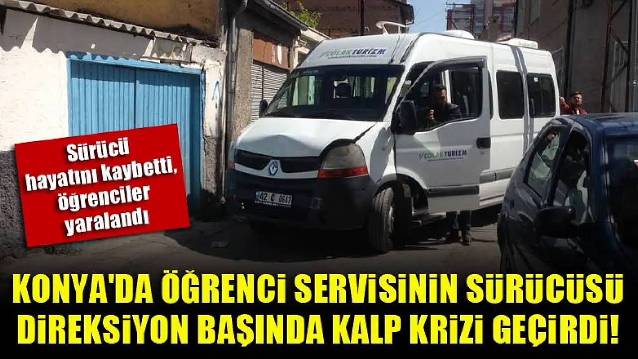 Kaza, dün saat 14.30 sıralarında merkez Meram ilçesi Hacı Fettah Mahallesi'nde meydana geldi. Özel bir turizm firmasına ait öğrenci servisinde şoförlük yapan Mevlüt Bayar, 8 öğrencinin bulunduğu 42 C 0647 plakalı servis minibüsünde, seyir halindeyken aniden rahatsızlandı. Kontrolden çıkan minibüs, bir evin duvarına çarparak durdu. İhbar üzerine olay yerine polis ve sağlık ekipleri sevk edildi. Kalp krizi geçirdiği tespit edilen Mevlüt Bayar, ambulansla hastaneye kaldırılırken hayatını kaybetti. Hafif yaralanan 3 öğrenciye ise Konya Eğitim ve Araştırma Hastanesi'nde ayakta müdahale edildi.